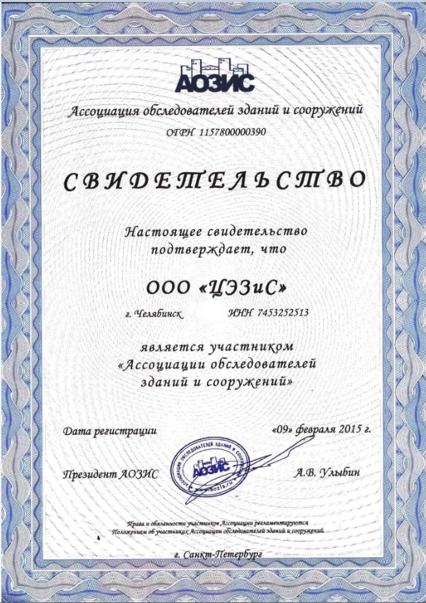 Мы стали Членом ассоциации обследователей "АОЗИС"