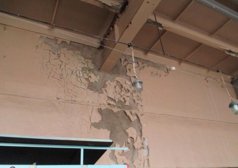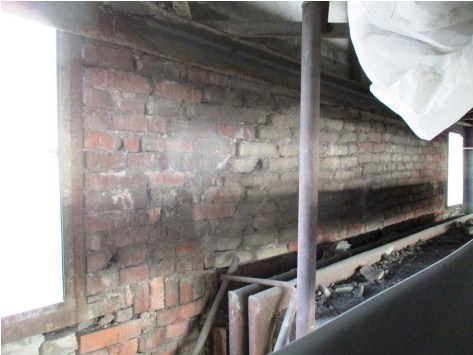 Наружные стены и внутренние самонесущие стены относятся к категории технического состояния - ограниченно-работоспособные. Выявлены такие дефекты, как: разный материал и деформирование кладки наружной стены, трещины по внутренним стенам в местах пропуска балок покрытия и опирания монорельсов.