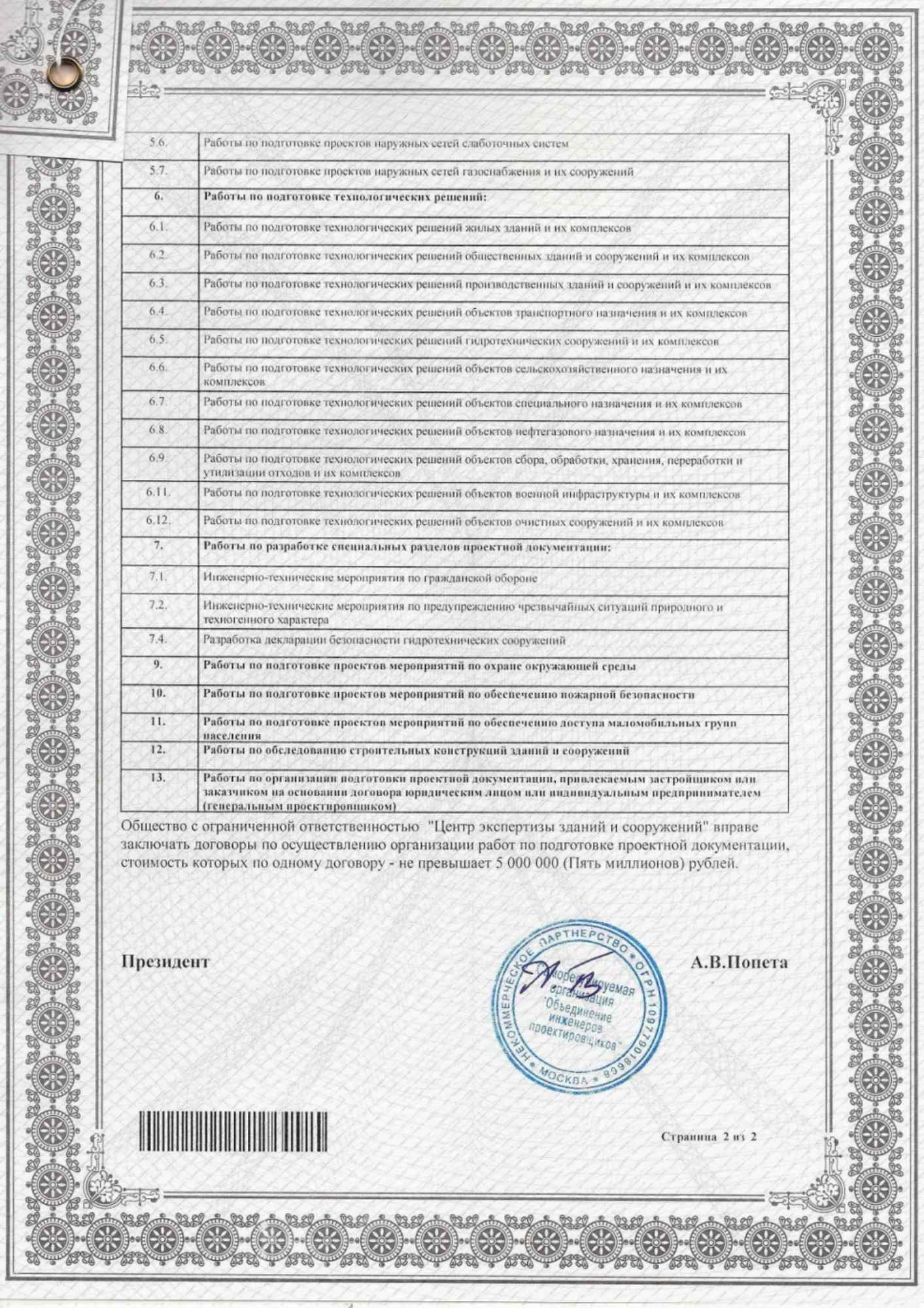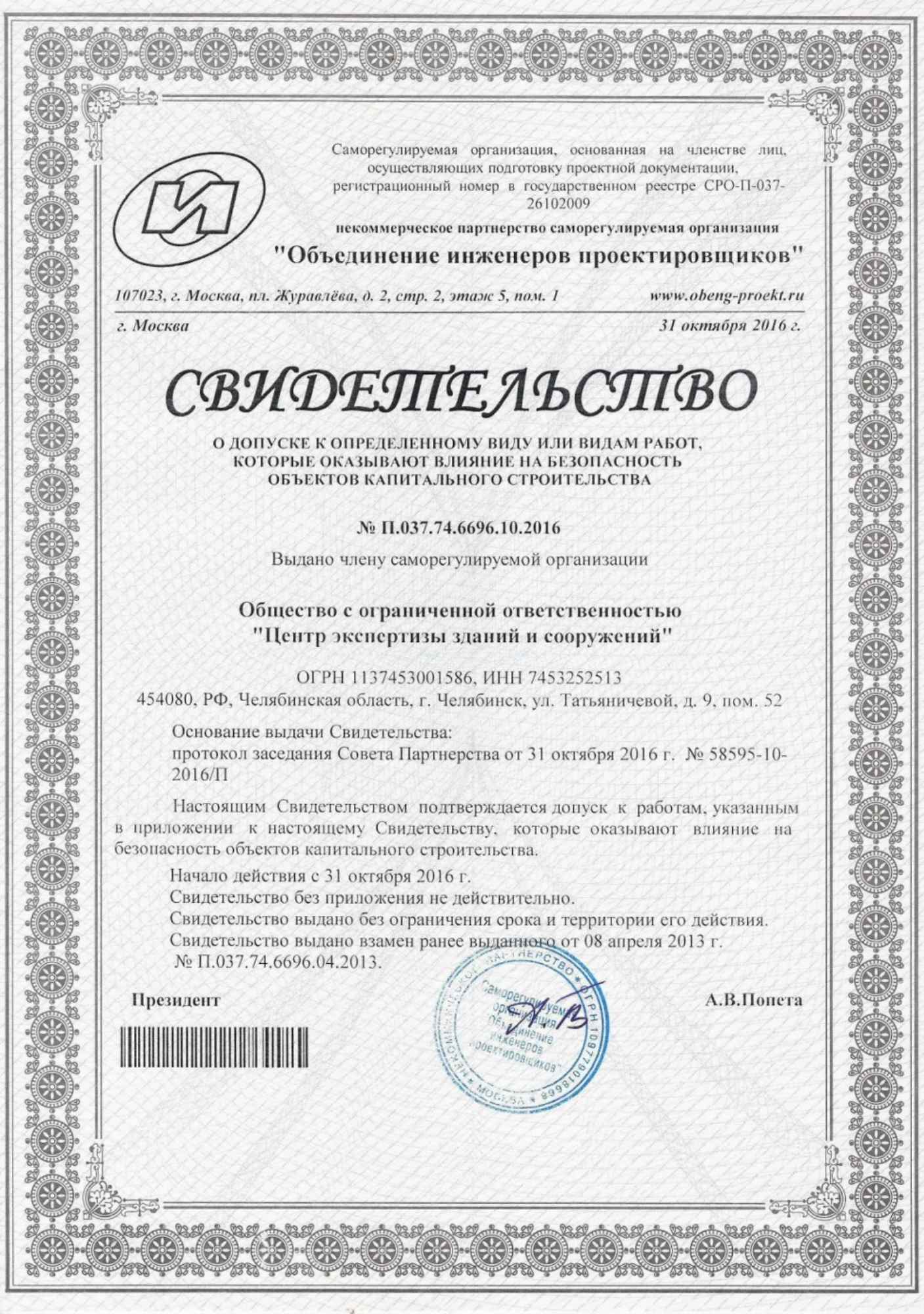 Свидетельство СРО на допуск к работам по проектированию и обследованию зданий: